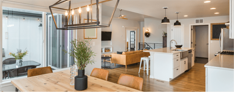 Important areas such as sconces in the kitchen or an entryway chandelier can create warmth in the home, while giving it a modern feel.