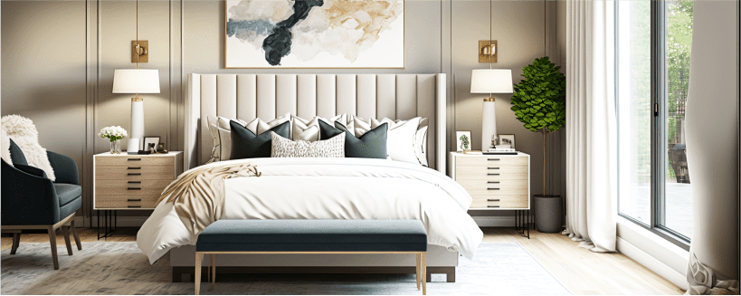 Try using a carpet that is neutral, but that also has texture to give it a high-end hotel-like feel.